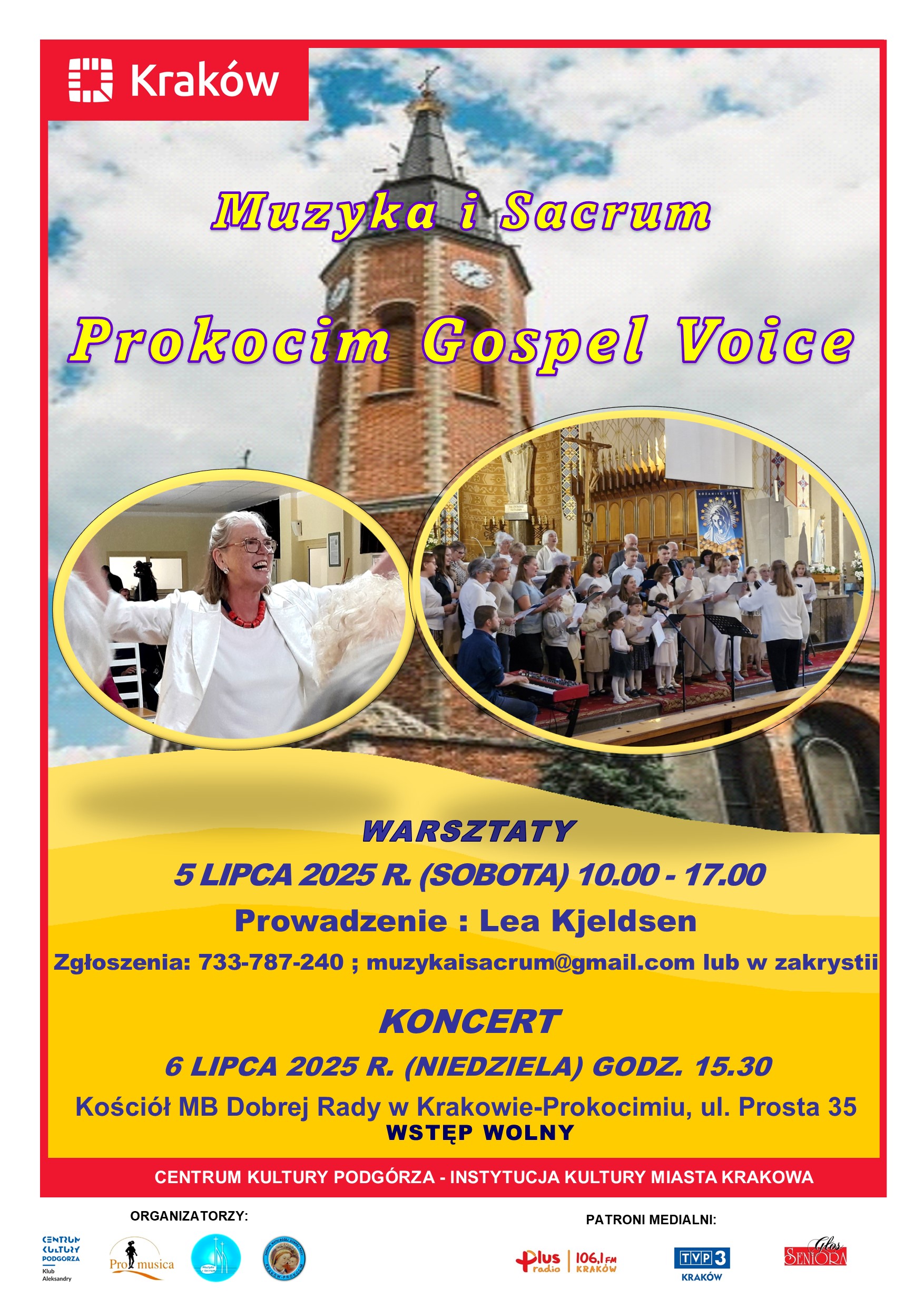 Zapraszamy zarówno osoby dorosłe jak też dzieci i młodzież. Uczestnicy warsztatów będą mogli zaśpiewać podczas koncertu z cyklu Muzyka i Sacrum – wspólnie z Chórem Gospel Senior – w niedzielę 6 lipca o godzinie 15.30.